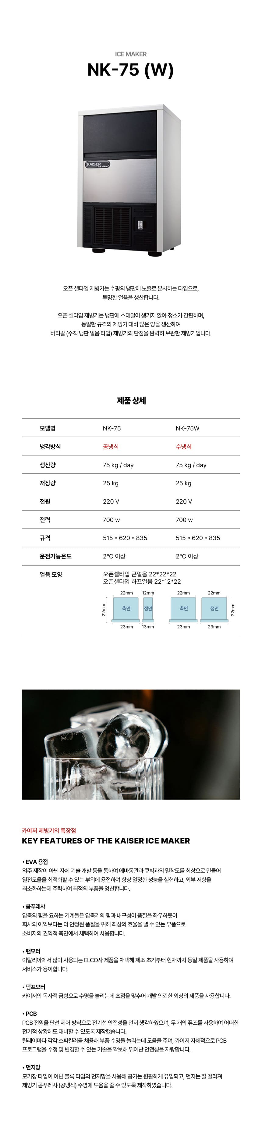 [카이저] 공랭식 판얼음 제빙기 75kg