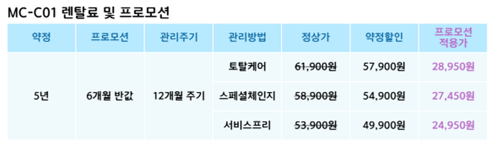 1644-3634 빠르고 간편한 렌탈 상담신청 개인정보 수집/이용 내용보기 동의 미동의 ※ 개인정보수집이용 동의 1. 개인정보의 수집 및 이용목적 : 원활한 렌탈 상담 및 주문을 위한 참조자료로 아래와 같은 항목의 개인정보를 수집하고 있습니다 2. 수집하려는 개인정보 항목 : 필수 수집항목 : 이름, 연락처 3. 개인정보의 보유 및 이용기간 : 수집된 정보는 이용자의 정보 삭제 요구 시까지 보관, 활용하며 수집 및 이용 목적이 달성된 후 해당 정보를 지체 없이 파기합니다. 단순 상담고객 3개월 후 파기 / 계약 고객 12개월 후 파기 4. 개인정보 취급 담당자 : 이름 : 연락처 : 1644-3634 5. 개인정보 수집 동의거부 사항 : 이용자의 개인정보는 원활한 상담을 위해 수집하고 있으며, 동의하지 않을 경우 상담 및 주문이 제한됩니다. [닫기]