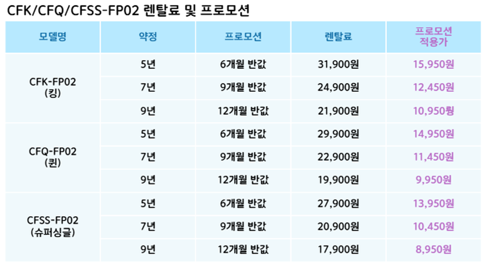 CFSS-FP02,CFQ-FP02,CFK-FP02 코웨이